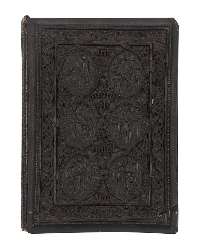 8vo. (163 x 116 mm). 32 chromolithographic illuminated pages. (Light spotting to a few leaves.) Original publisher’s leather-backed black papier-mâché boards, turn-ins gilt, edges gilt (some cracking or chipping, some light rubbing to spine). Provenance: T. Bowler (bookseller’s label); Miss France (gift inscription from Walter Davies, 1849).