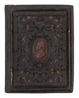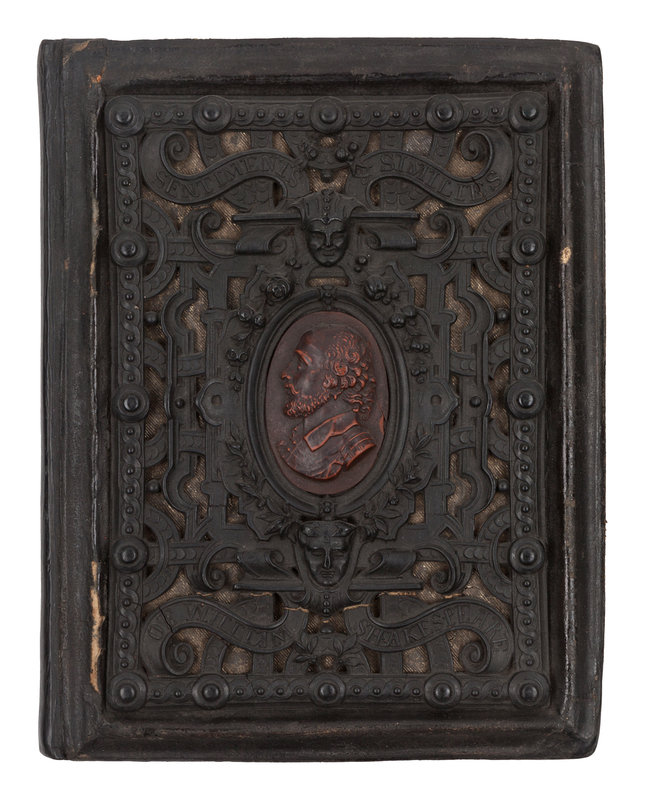 8vo. (190 x 148 mm) First leaf of text within a chromolithographed border and with an historiated initial, text embellished with gilt. (Some spotting to a few leaves.) Original leather-backed decorative papier-mâché boards with cut-out design over gilt cloth set with a central inset portrait of Shakespeare on upper cover and his initials and a laurel wreath to the lower cover, turn-ins gilt, edges gilt (hinge repaired; some cracking or chipping; covers slightly rubbed). Provenance: Albon Torven? Library (signature in pencil); Gloucestershire College of Art & Design Library (library stamp).