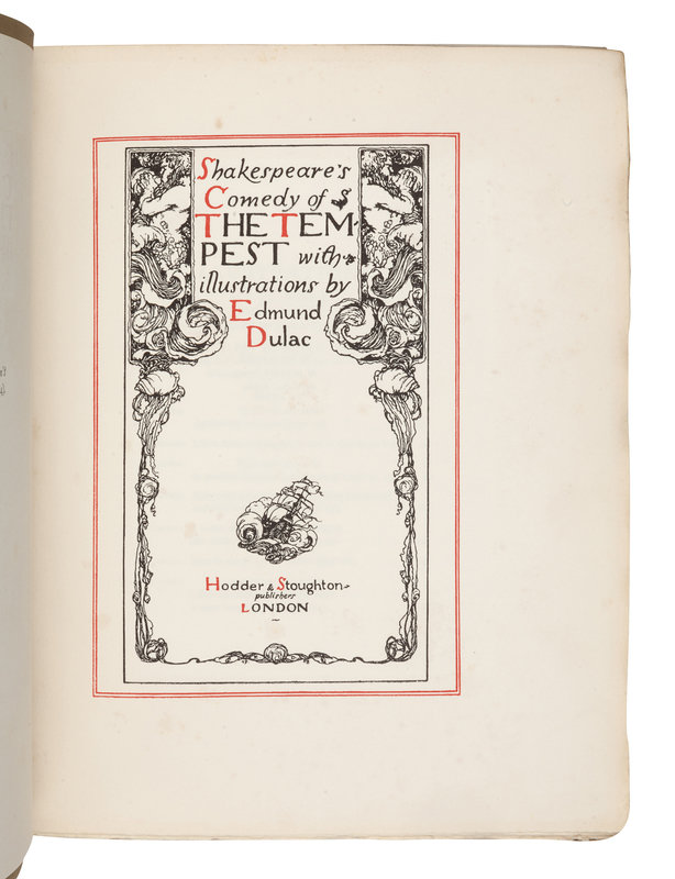 [ILLUSTRATED BOOKS]. DULAC, Edmund (1882-1953), illustrator. -- SHAKESPEARE, William (1564-1616). The Tempest. London: Hodder and Stoughton, [1908].