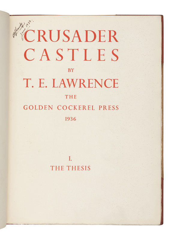 LAWRENCE, Thomas Edward (1888-1935). Crusader Castles. Waltham Saint Lawrence, Berkshire: Golden Cockerel Press, 1936.