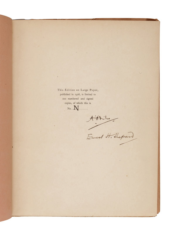 FIRST AMERICAN EDITION, LIMITED EDITION, number N of 200 large-paper copies printed on Japan vellum, SIGNED BY MILNE AND SHEPARD.
