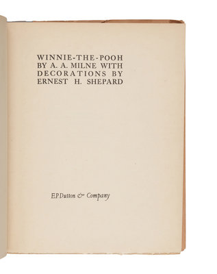 MILNE, Alan Alexander (1882-1956). Winnie the Pooh. New York.: E. P. Dutton & Company, 1926.
