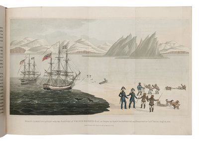 FIRST EDITION OF ROSS'S FAMOUS FIRST VOYAGE. Ross, along with William Parry, his nephew James Clark Ross, and Edward Sabine, attempted to proceed westward through Lancaster Sound. Deceived, quite possibly by a mirage, Ross described the passage as barred by a mountain range that he named the Croker Mountains. On his return to England, his observations were initially accepted as conclusive. He was promoted to post rank on 7 December 1818. Controversy would soon follow, as Sir John Barrow, who learned that there were some doubts as to the existence of the Croker Mountains, dispatched another expedition under the command of Parry (see Lot 241). Despite Ross's willingness to make another voyage, he was not given another opportunity to lead an Arctic expedition until 1829. Abbey Travel 634; Arctic Bibliography 14873; Hill 1488; NMM 818; Sabin 73376; TPL 1152.