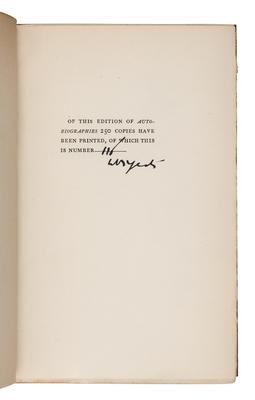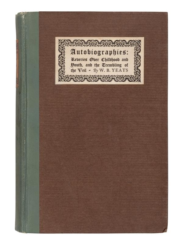 YEATS, William Butler, (1865-1939). Autobiographies. Reveries Over Childhood and Youth and the Trembling of the Veil. New York: The Macmillan Company, 1927.