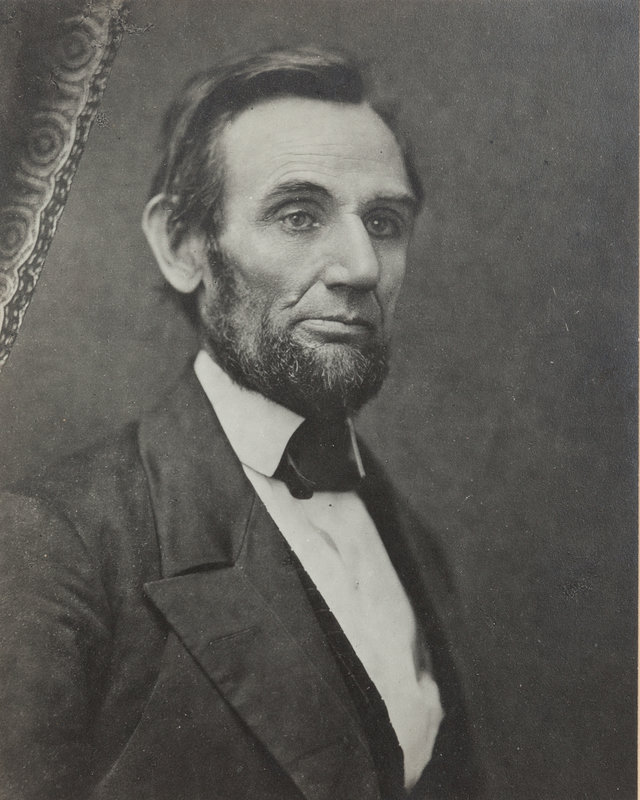 LINCOLN, Abraham (1809-1865). GERMAN, C. S., photographer, after. Photograph portrait, 20th-century reprint from the original 1861 glass negative. Springfield, IL: Herbert Georg Studio, [ca 1941?].
