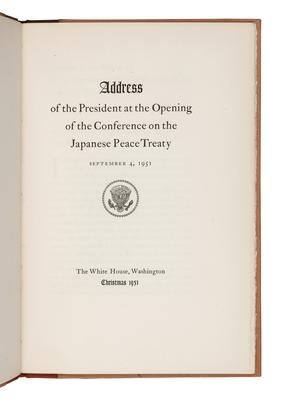 TRUMAN, Harry S. (1884-1972). Address of the President at the Opening of the Conference on the Japanese Peace Treaty. Washington: The White House, Christmas 1951.