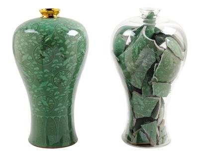 glazed and gilt stoneware, glass