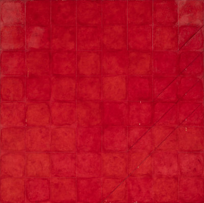 , 1967 acrylic and cardboard collage on canvas