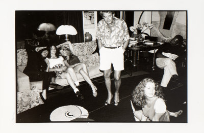 A pair of photographs (Helmut Newton, "Gorgeous Red"; Tatiana Von Furstenberg and friends)