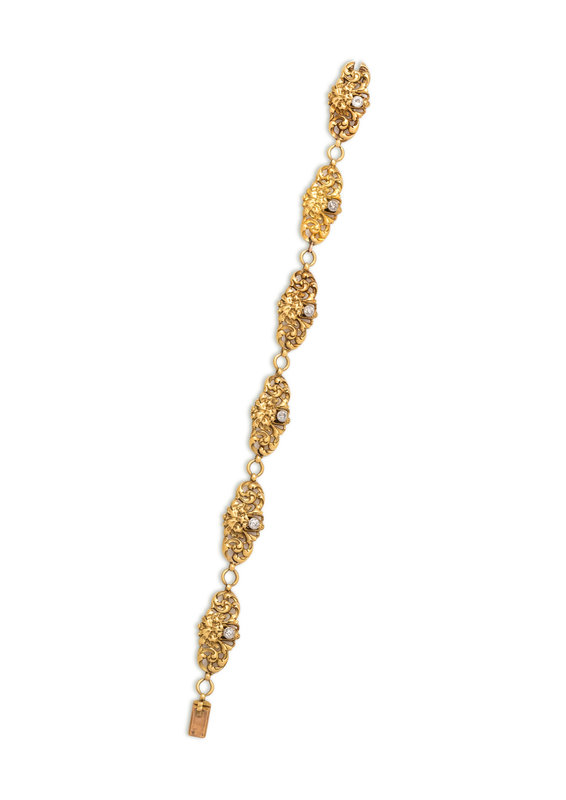 FRENCH, YELLOW GOLD AND DIAMOND BRACELET