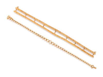 Consisting of a bracelet containing 44 round brilliant cut diamonds weighing approximately 1.75 carats total, together with a bracelet jacket. Mounted in yellow gold.