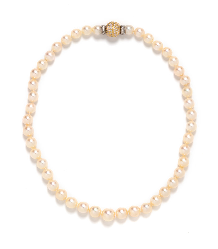 CULTURED PEARL AND DIAMOND NECKLACE