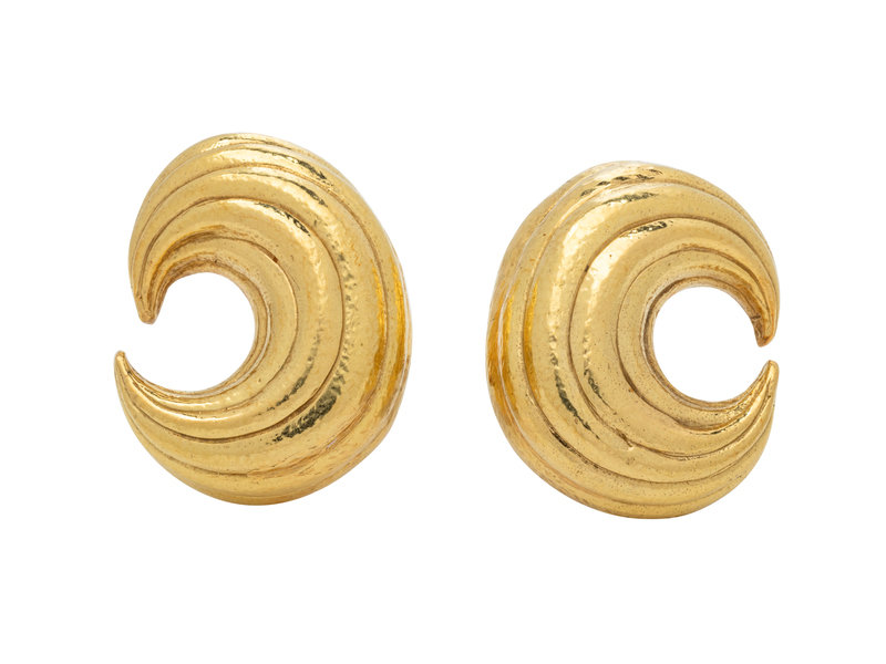Designed as ribbed curved earclips with hammered finish.