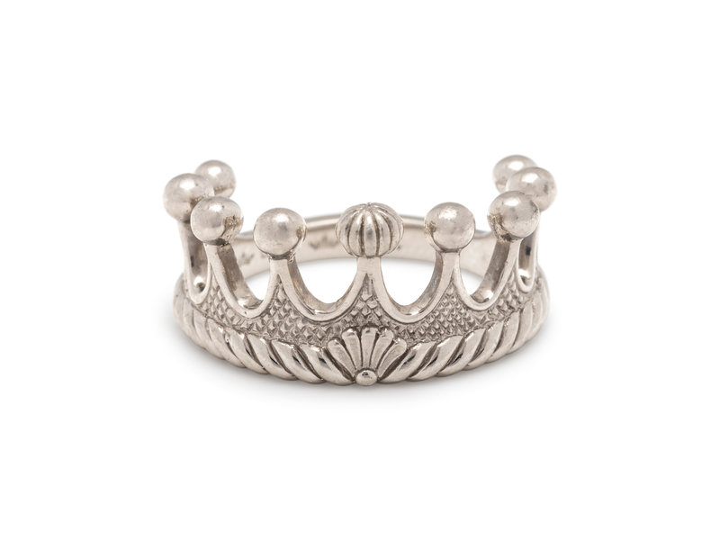 In a detailed crown design.
