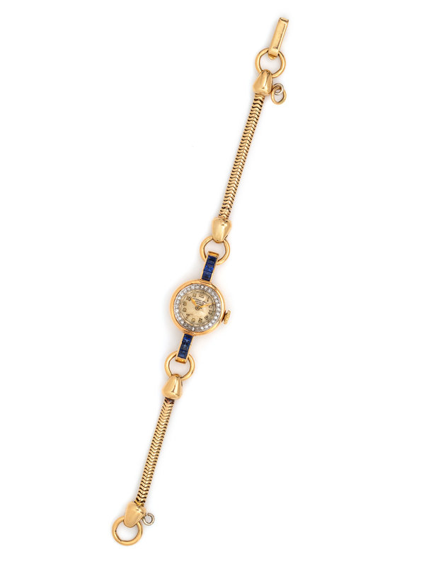 HENRY BLANK & CO., RETRO, YELLOW GOLD, DIAMOND AND SAPPHIRE WRISTWATCH