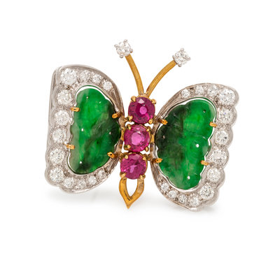 DIAMOND, JADE AND RUBY BUTTERFLY BROOCH