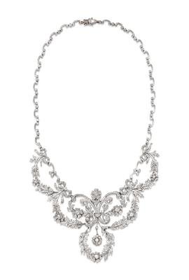 In a floral garland design, containing numerous round brilliant cut diamonds weighing approximately 1.65 carats total.
