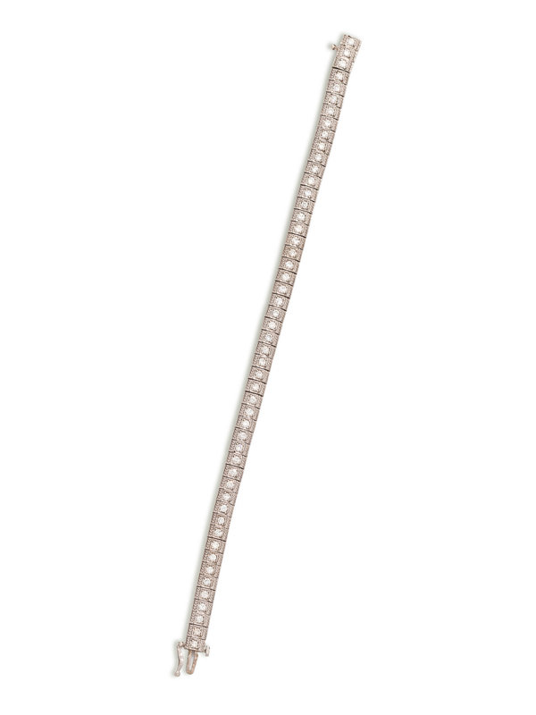 Containing 51 round brilliant cut diamonds weighing approximately 1.55 carats total. Mounted in white gold.