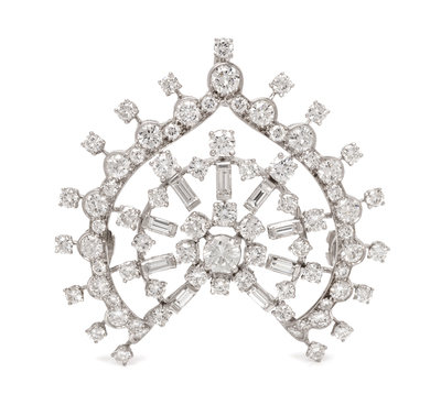 Containing 76 round brilliant cut and nine baguette cut diamonds weighing approximately 4.00 carats total. Mounted in platinum.