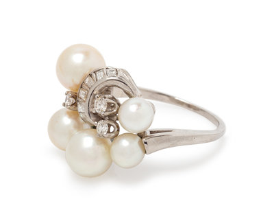 CULTURED PEARL AND DIAMOND RING
