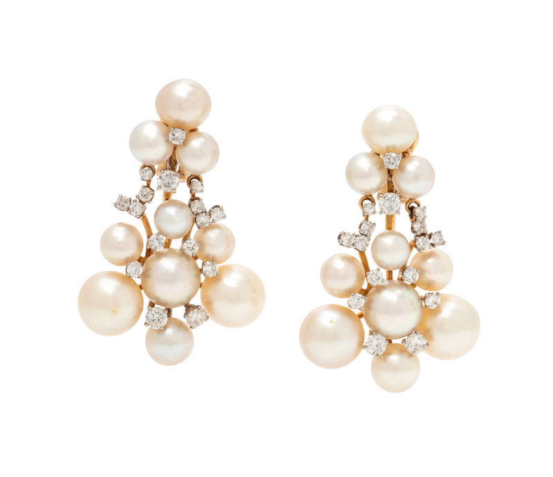 CULTURED PEARL AND DIAMOND EARCLIPS