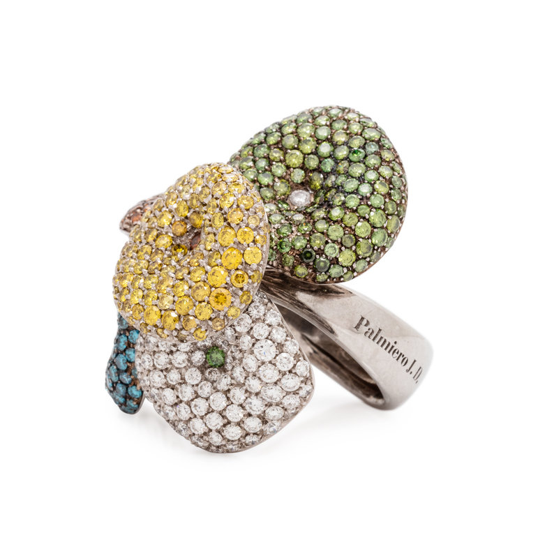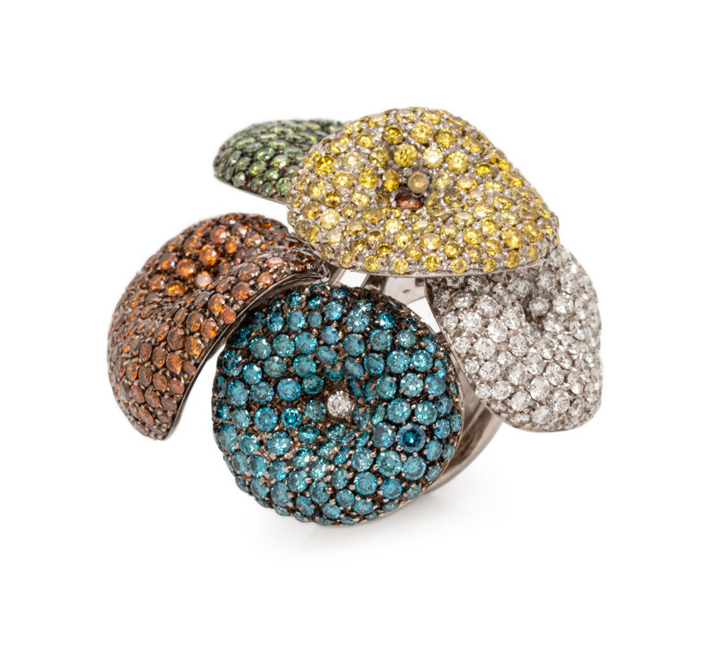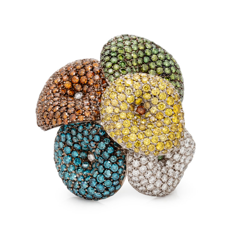 PALMIERO, DIAMOND AND COLORED DIAMOND 'MUSHROOM' RING