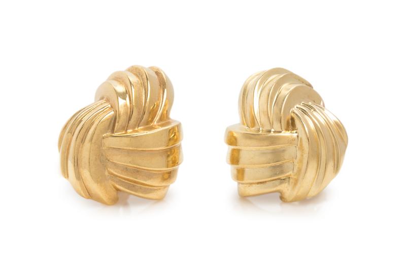 In a ribbed knot motif, posts with clip backs.