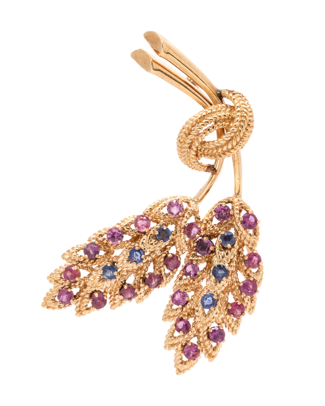 PINK AND BLUE SAPPHIRE WHEAT MOTIF BROOCH