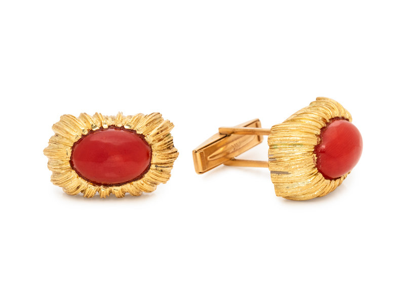 YELLOW GOLD AND CORAL CUFFLINKS