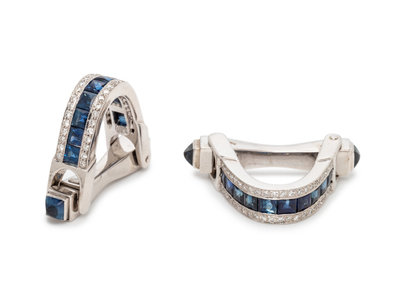 SAPPHIRE AND DIAMOND STIRRUP CUFFLINKS