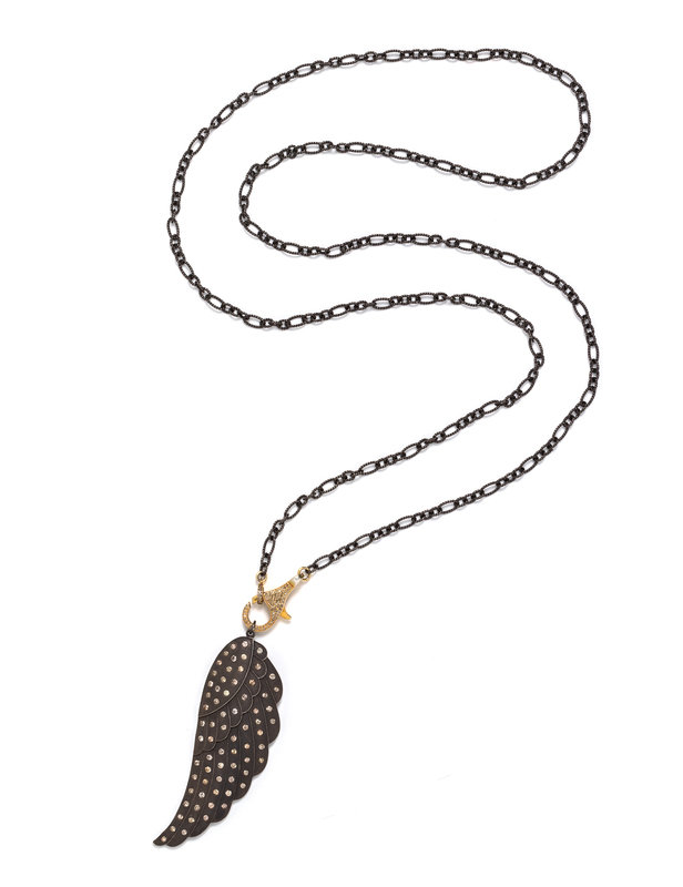 OXIDIZED SILVER, GOLD-FILLED AND DIAMOND PENDANT/NECKLACE