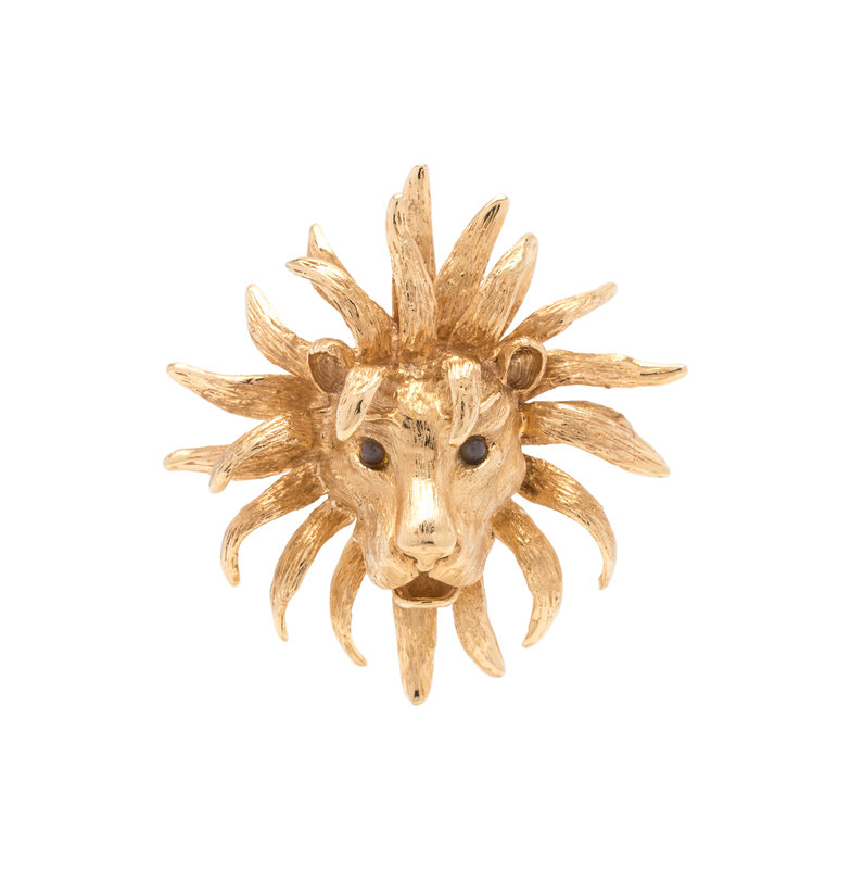 YELLOW GOLD AND GEMSTONE LION PENDANT/BROOCH
