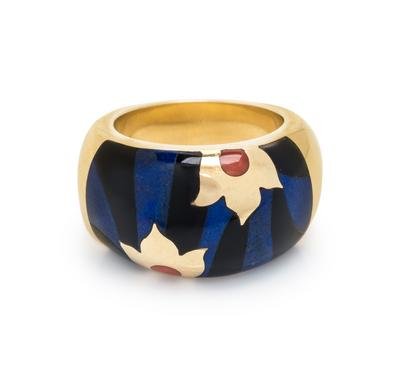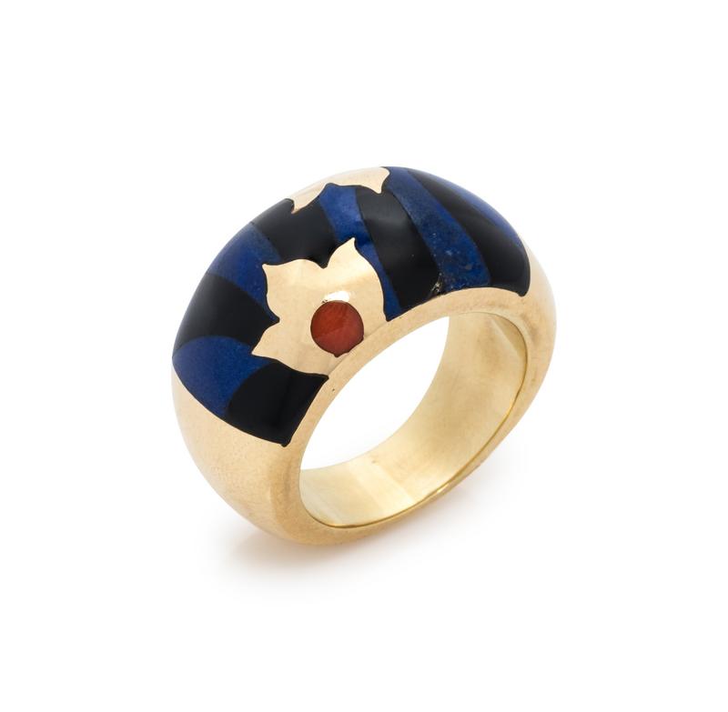 YELLOW GOLD AND GEMSTONE INLAY RING
