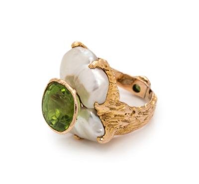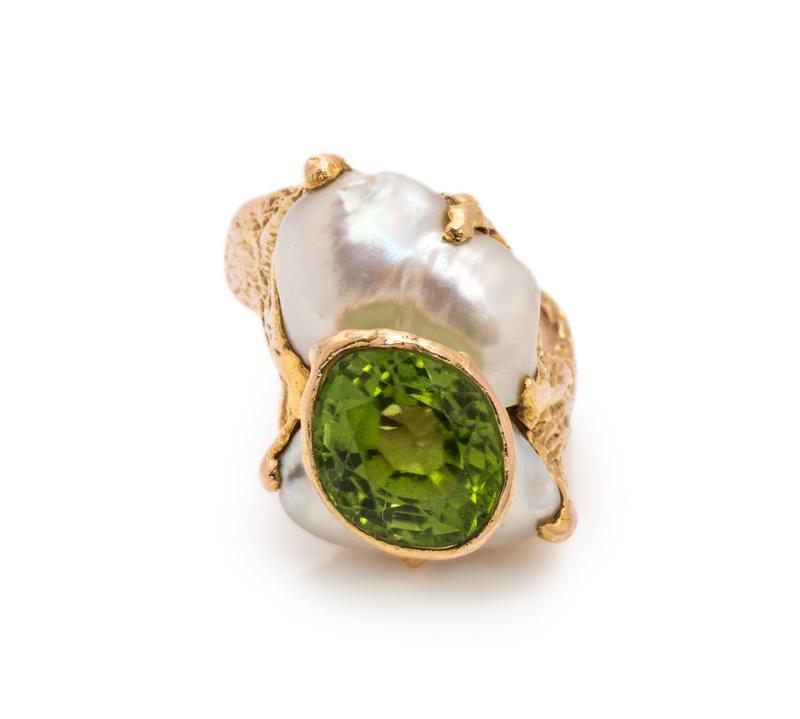 PERIDOT AND CULTURED PEARL RING