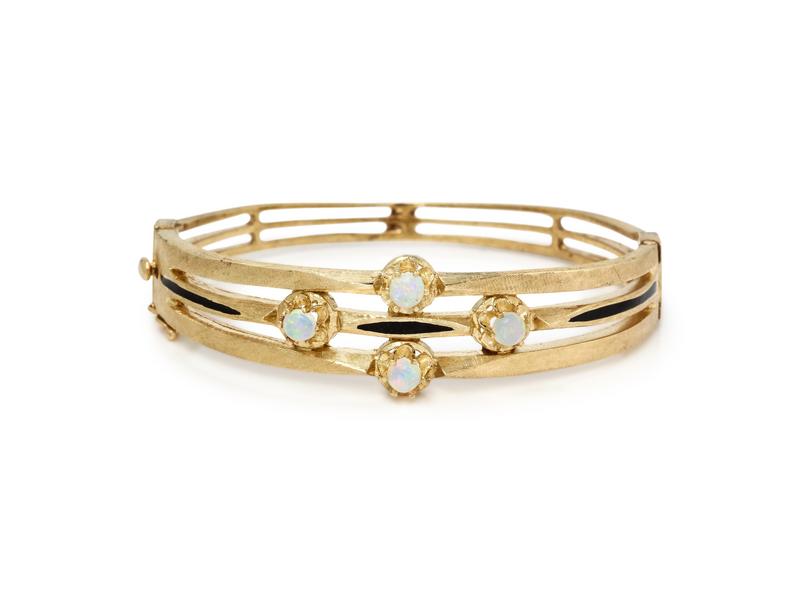 YELLOW GOLD AND OPAL BANGLE BRACELET