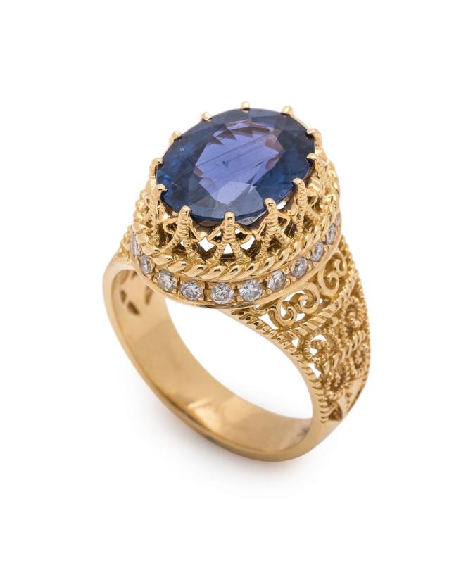 CYNTHIA BACH, COLOR-CHANGE SAPPHIRE AND DIAMOND RING