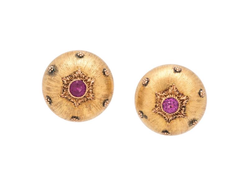BUCCELLATI, YELLOW GOLD AND RUBY EARCLIPS
