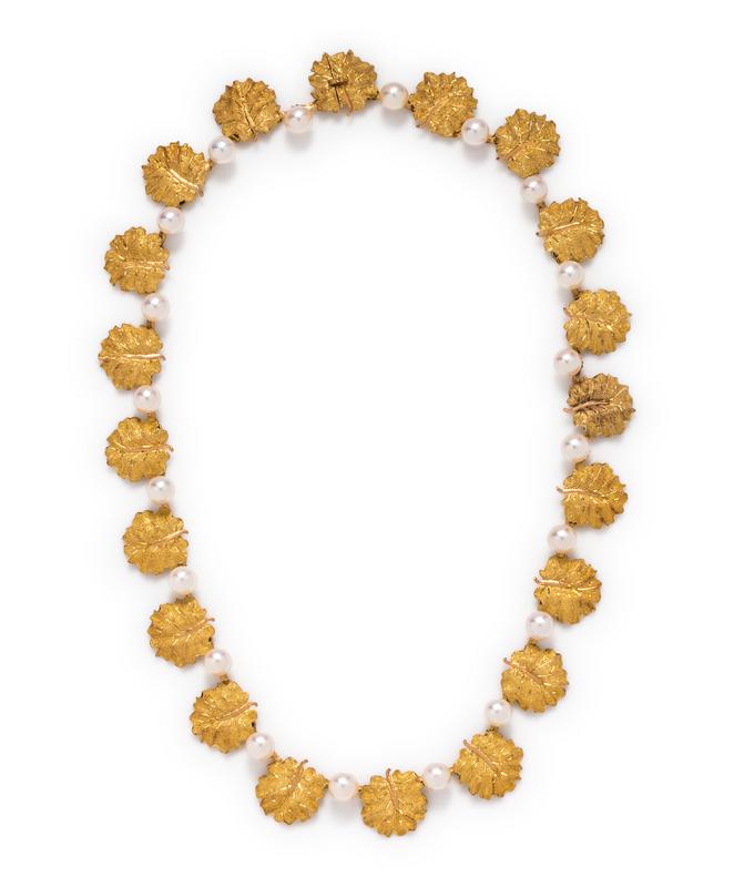 BUCCELLATI, YELLOW GOLD AND CULTURED PEARL LEAF MOTIF NECKLACE
