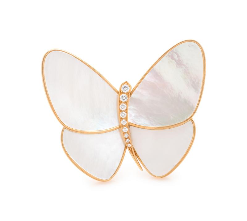 VAN CLEEF & ARPELS, DIAMOND AND MOTHER-OF-PEARL BUTTERFLY BROOCH
