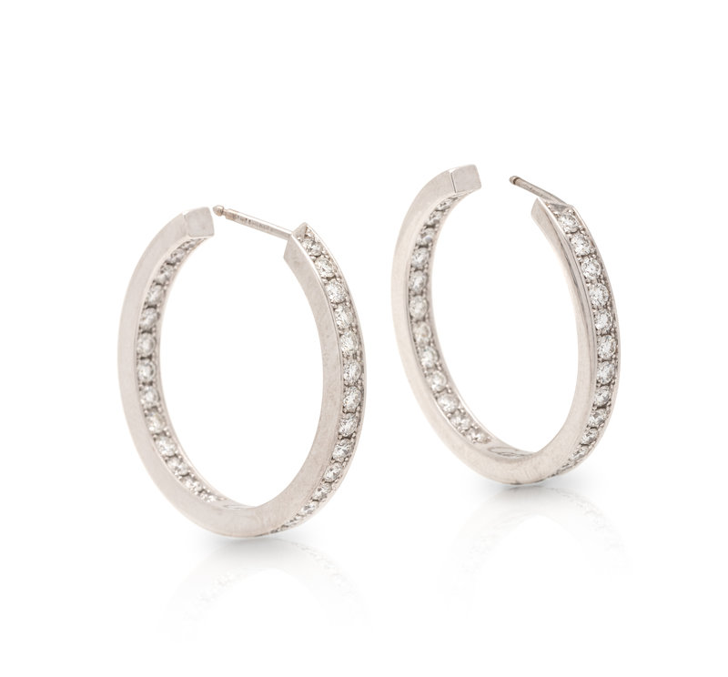 In an inside out style, containing 60 round brilliant cut diamonds weighing approximately 1.20 carats total. Mounted in white gold.