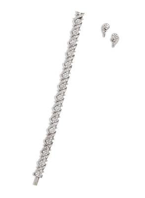 Consisting of a bracelet containing numerous single cut diamonds weighing approximately 2.50 carats total, together with a pair of earclips containing 22 single cut diamonds weighing approximately 0.35 carat total. Mounted in white gold.