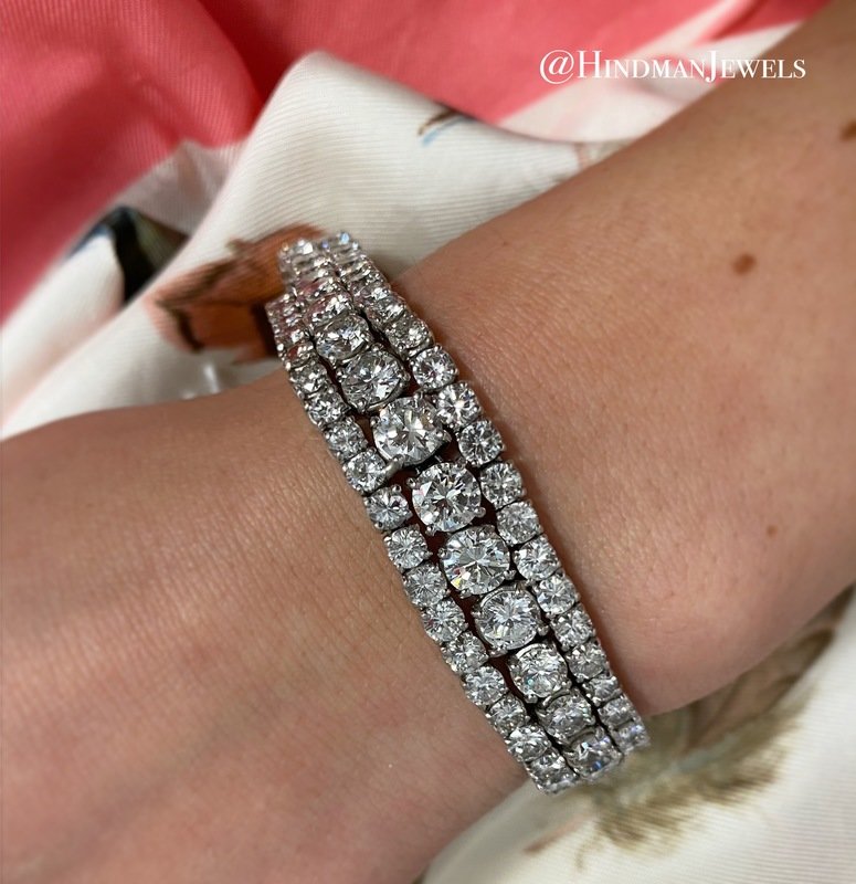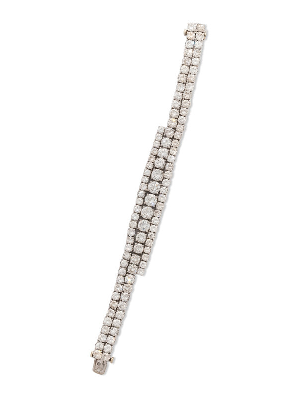 Containing 97 round brilliant cut diamonds weighing approximately 20.00 carats total. Mounted in platinum.