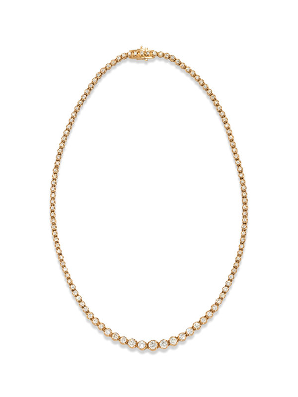 Containing 112 round brilliant cut diamonds weighing approximately 6.50 carats total. Mounted in yellow gold.