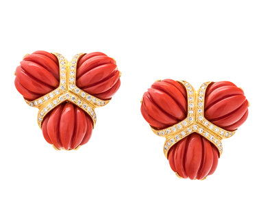 VALENTIN MAGRO, CORAL AND DIAMOND EARCLIPS