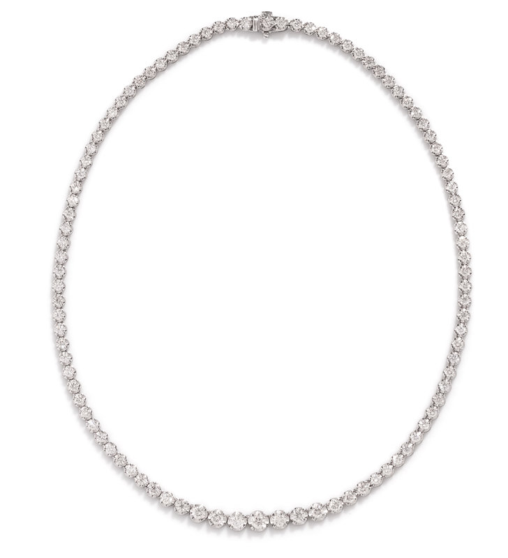 Containing 96 round brilliant cut diamonds weighing approximately 9.00 carats total. Mounted in white gold.