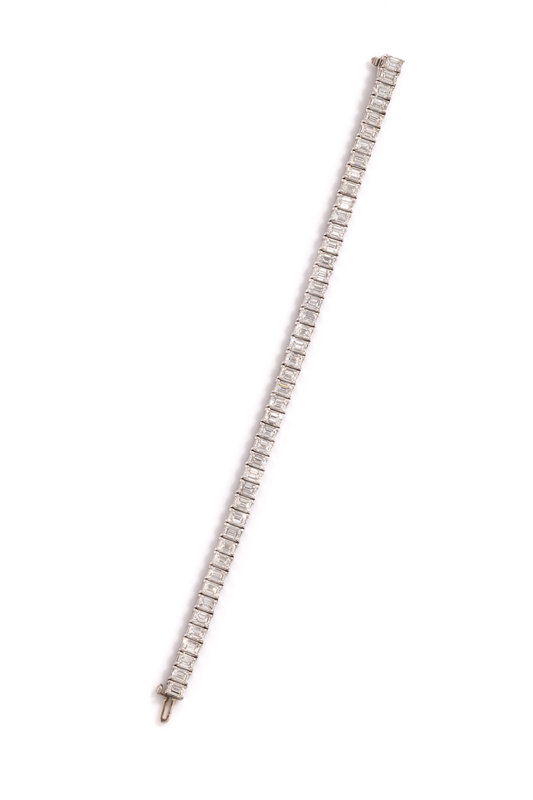 Containing 45 emerald cut diamonds weighing approximately 13.50 carats total. Mounted in platinum.