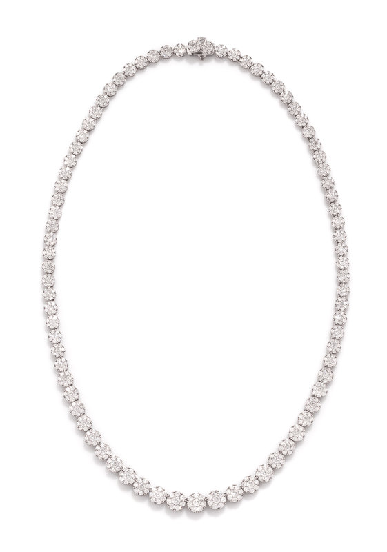 Containing numerous round brilliant cut diamonds weighing approximately 10.00 carats total. Mounted in white gold.