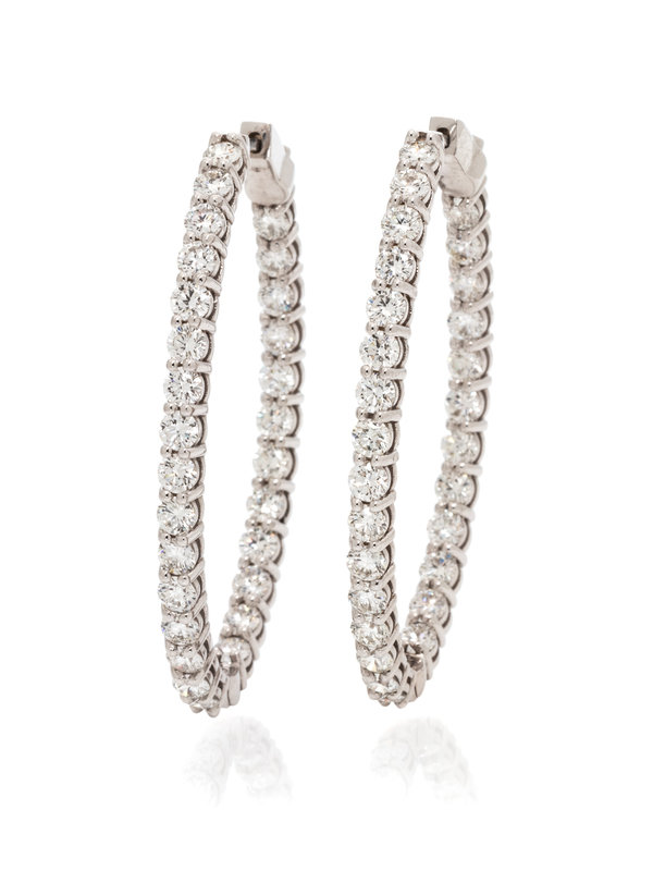 In an inside out style, containing 56 round brilliant cut diamonds weighing approximately 5.30 carats total. Mounted in white gold.
