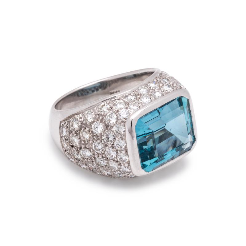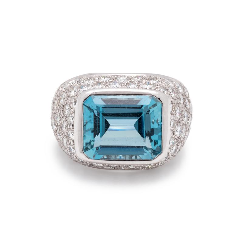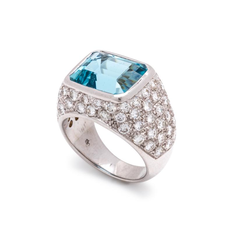 HAMMERMAN BROTHERS, AQUAMARINE AND DIAMOND RING