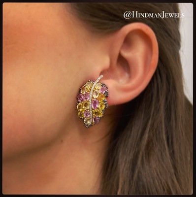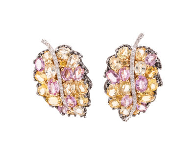 MULTICOLOR SAPPHIRE AND DIAMOND LEAF EARCLIPS